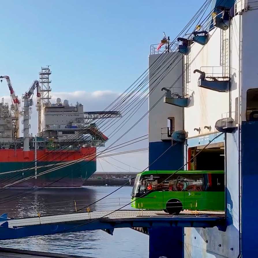 El pasado 28 de abril, llegaron 75 nuevas guaguas de Titsa al puerto de Santa Cruz de Tenerife. Aquí mostramos el trabajo con drone realizado para documentar el evento.